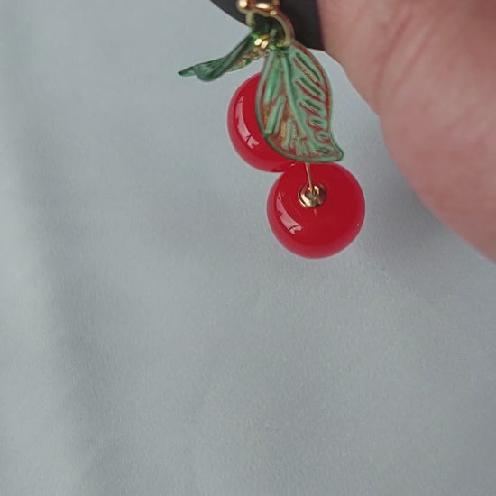 Crafted with meticulous detail, each earring boasts a juicy cherry design that's impossible to resist. The glossy finish and intricate detailing capture the essence of this delightful fruit, dangling cheerfully with every step and sway.