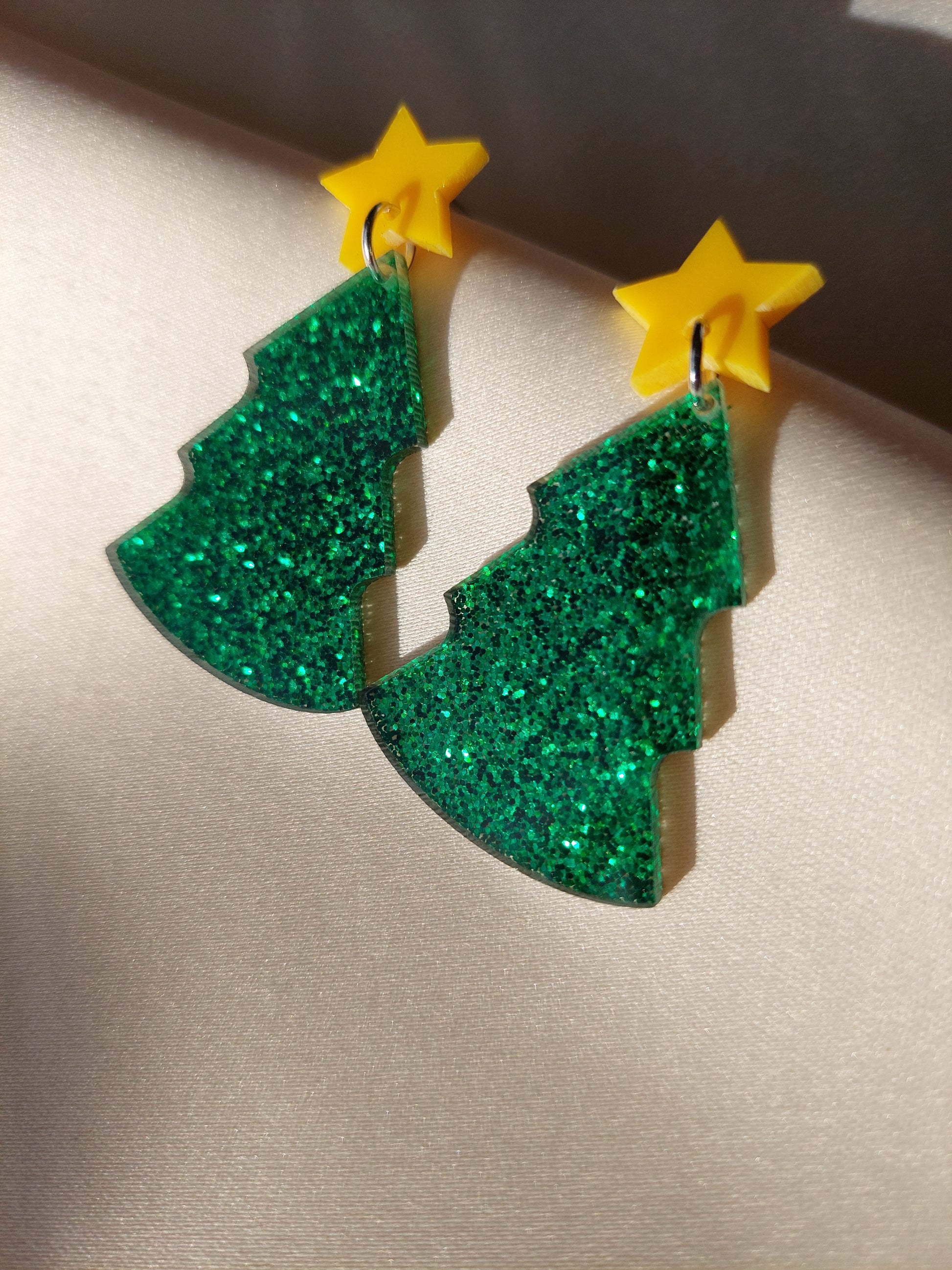Looking for a pair of earrings that will add some sparkle to your holiday season? Look no further than our Christmas Glitter Tree Earrings! These delightful accessories feature shimmering glitter that captures the essence of the season in a fun and festive way. With their whimsical tree design and eye-catching sparkle, these earrings are sure to be the star of your holiday wardrobe. So why settle for ordinary earrings when you can add some extra "tree-t" to your outfit with our Christmas Glitter Tree Earrings?