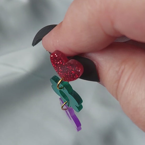 Introducing our Glitter Hearts and Flowers Earrings from Lunar Belle Gems. The fun-loving spirit of these earrings is undeniable. The playful combination of glitter hearts and flowers, adds a lively touch to your outfit.