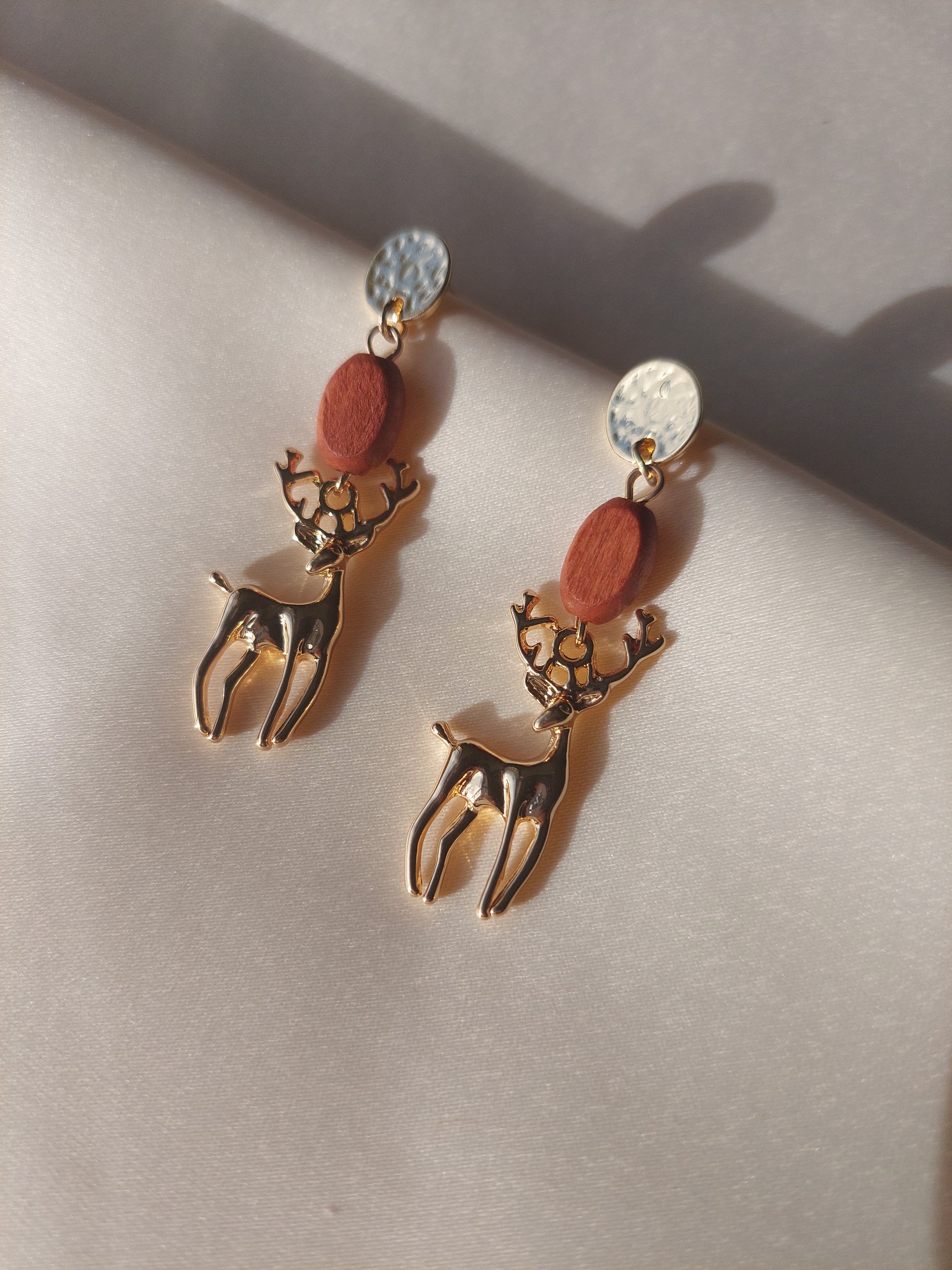 A perfect blend of simplicity and elegance. These earrings are a subtle yet stylish addition to your jewellery collection. The reindeer design is crafted with intricate details that add a touch of charm and sophistication to your outfit. These earrings are versatile enough to be worn on any occasion, and their minimalist design ensures that they don't overpower your overall look. Upgrade your accessory game with our Gold Reindeer Earrings today.