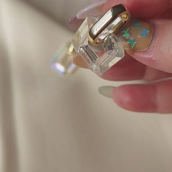 Light, aerie with some beautfil sparkle. The perfect accessory for anyone looking to add a touch of modern glamour to their outfit. These earrings feature a sleek chain design with iridescent accents that catch the light beautifully, creating a stunning, eye-catching effect that's sure to turn heads.
