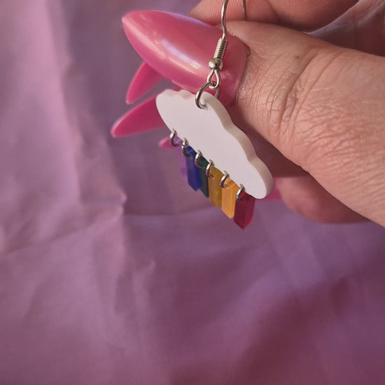 The Over the Rainbow Earrings are pure happiness in accessory form. Featuring white cloud tops and dangling rainbow acrylic pieces that move as you do, these earrings shimmer with every step.