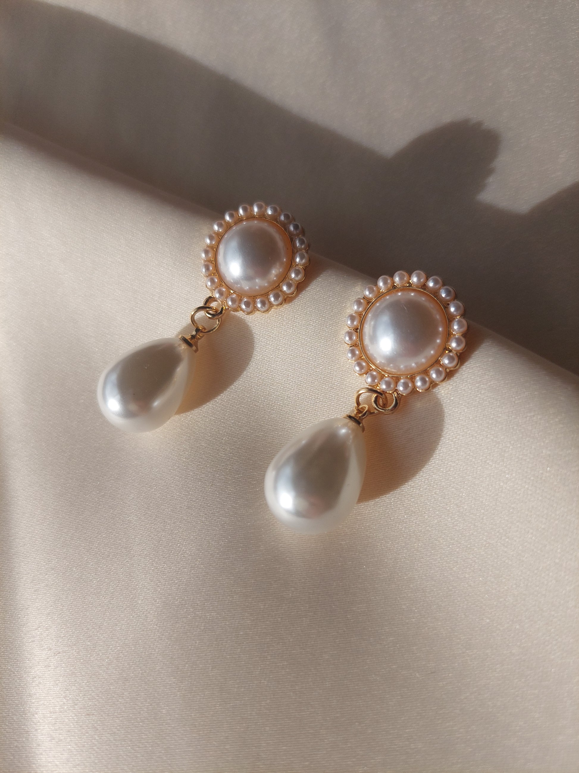 Looking for a pair of earrings that exude class and timelessness? Check out these gorgeous faux pearl drop earrings from Lunar Belle! Classic pearls, you really cannot go wrong. Diamonds... and Pearls are everyone's best friend. It's giving Breakfast at Tiffany's or Tipene's hehe! So why settle for ordinary earrings when you can have these classic beauties? Add them to your collection today and get ready to shine like a pearl!