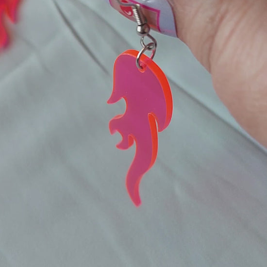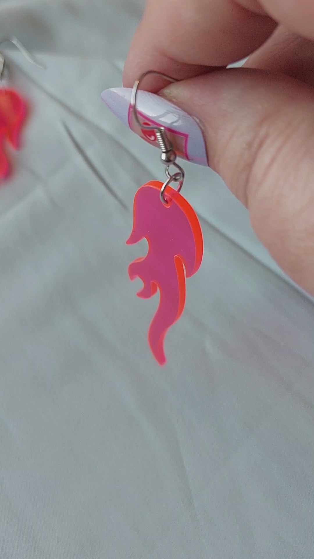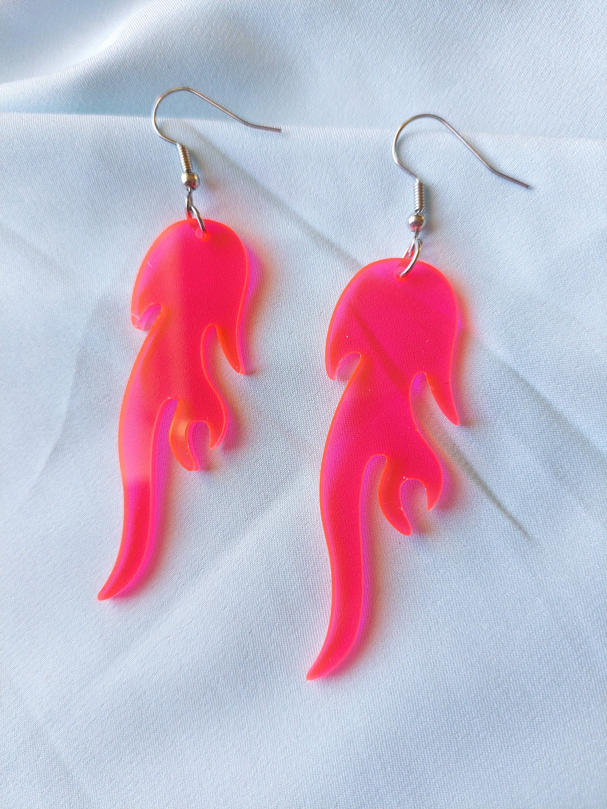 Little known fact, when a bad bitch goes to hell, they come back with a pair of these. It's giving diabolical realness, giving manic pixie fantasy, neon Harleen Quinzel... Do ya like 'em, Puddin'? Whether you're going for a casual or dressy look, the Pink Flame Earrings will elevate your fashion game and give you a confident edge.