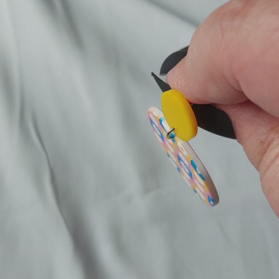 Introducing our Retro Sherbert Earrings – the epitome of fun, playfulness, and sweet style. Inspired by the playful palette of sherbet, these earrings feature a mix of pastel tones that dance together in perfect harmony. These earrings aren't just accessories; they're a mood-booster and a style statement.