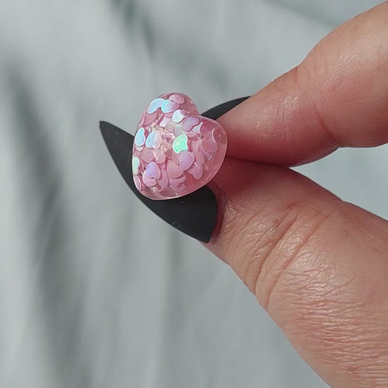 Introducing our Sparkly Heart Studs. Made from lightweight, high-quality resin, these earrings boast a unique charm that sets them apart. The focal point of each stud is a resplendent, iridescent heart that catches and reflects light, creating a dazzling display of sparkles with every movement.