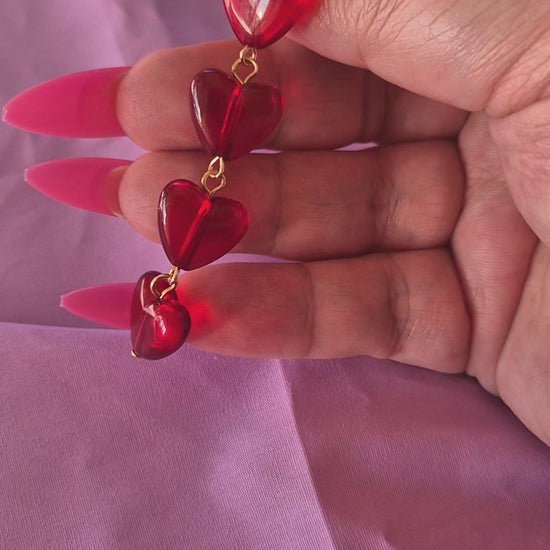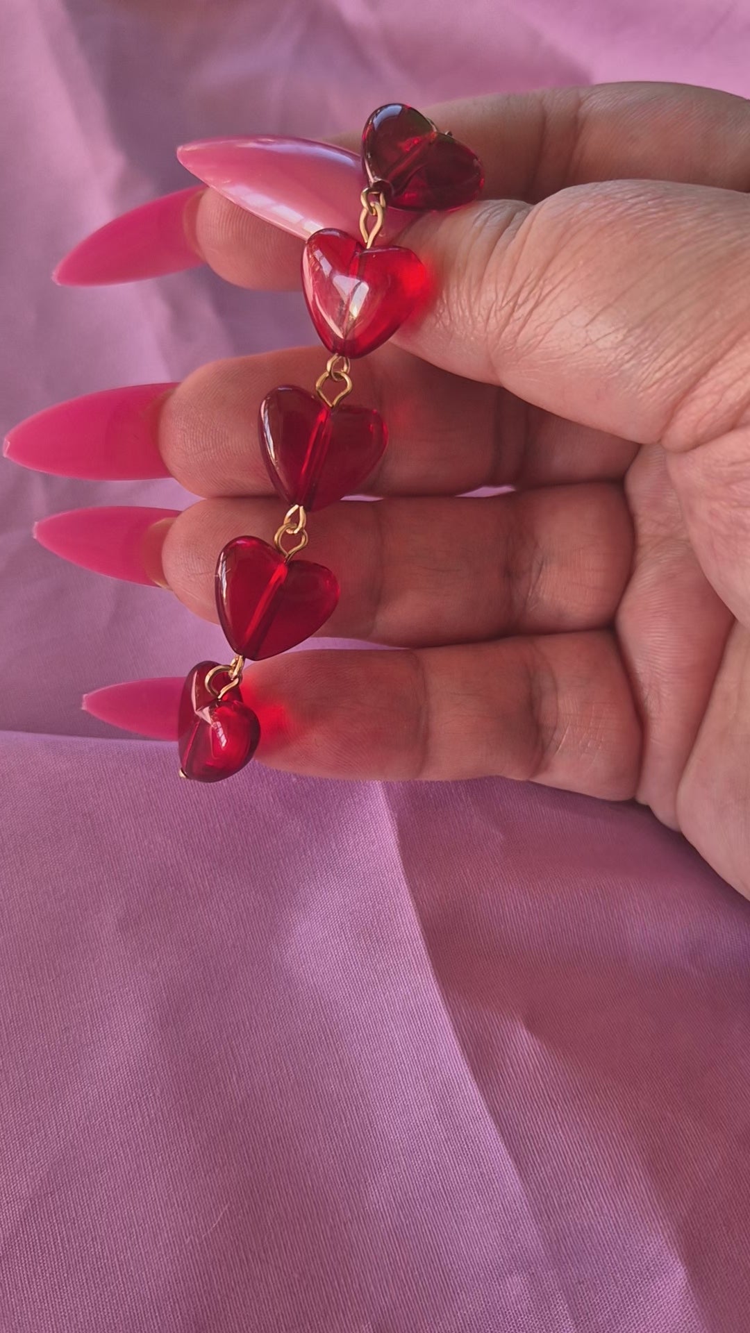 Turn up the heat with our Supernova Heart Earrings – a fiery cascade of glossy red hearts made to command the room. Long, lightweight, and full of movement, these earrings bring the drama in the most delicious way.